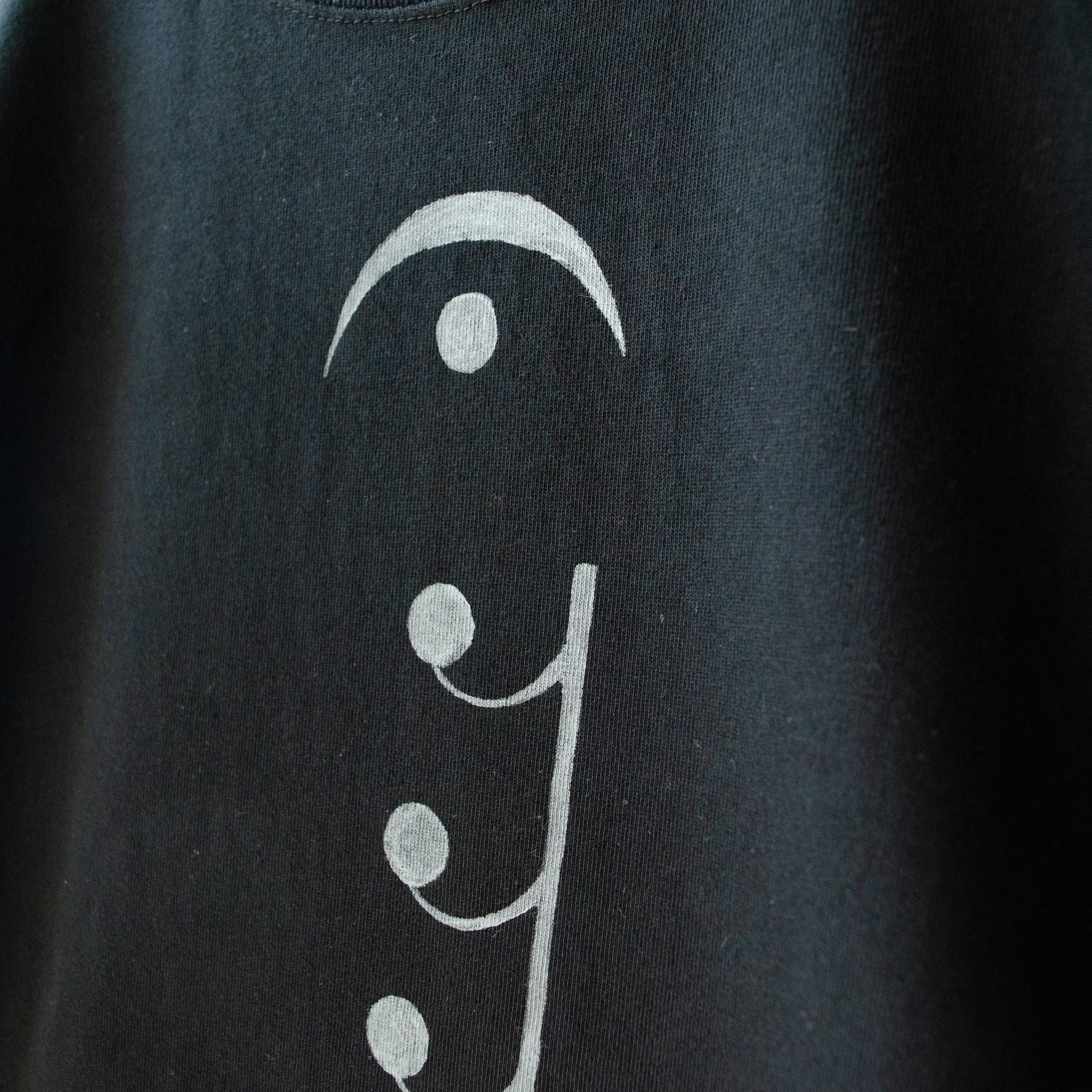 表にデザインされた象徴的な造形は通常の楽譜では組み合わされることのない、128分休符(ごく小さな休み)、フォルテッシモ(どんどん強く)、フェルマータ(ずっと)で構成されている。
