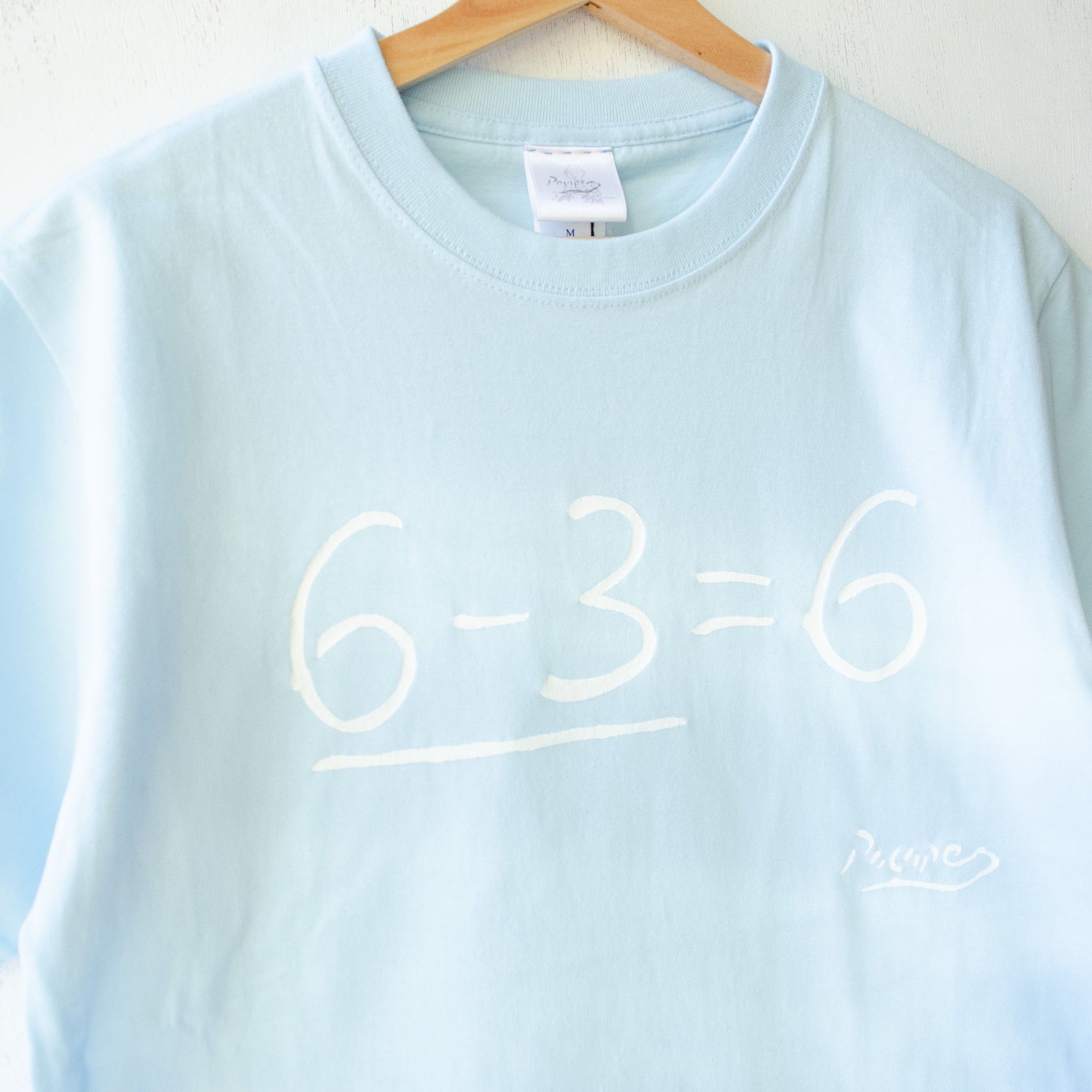 偉人をテーマにTシャツを作ろうと思った時、真っ先に思い浮かんだのがアインシュタインだった。あの有名な写真、彼の後ろに書かれている数式が6-3=6である。6-3が3とは限らないのだ。