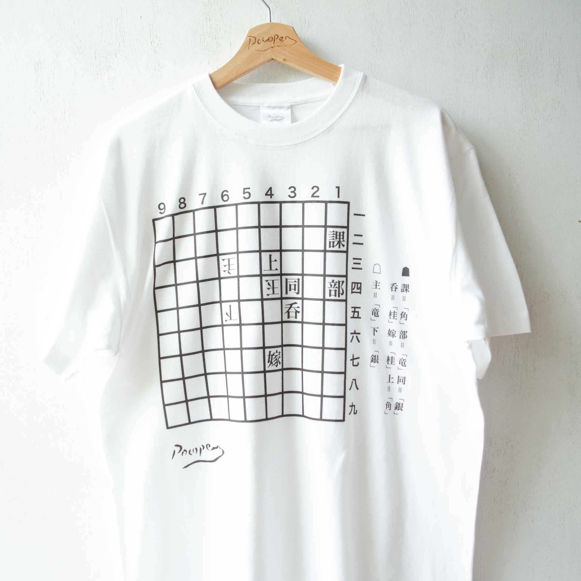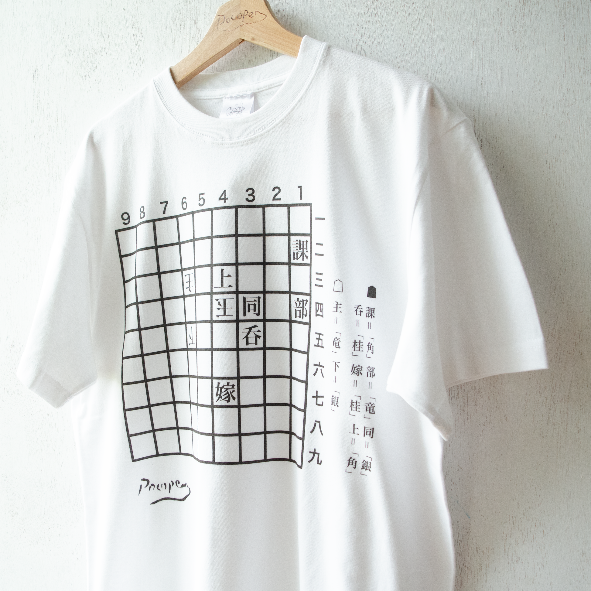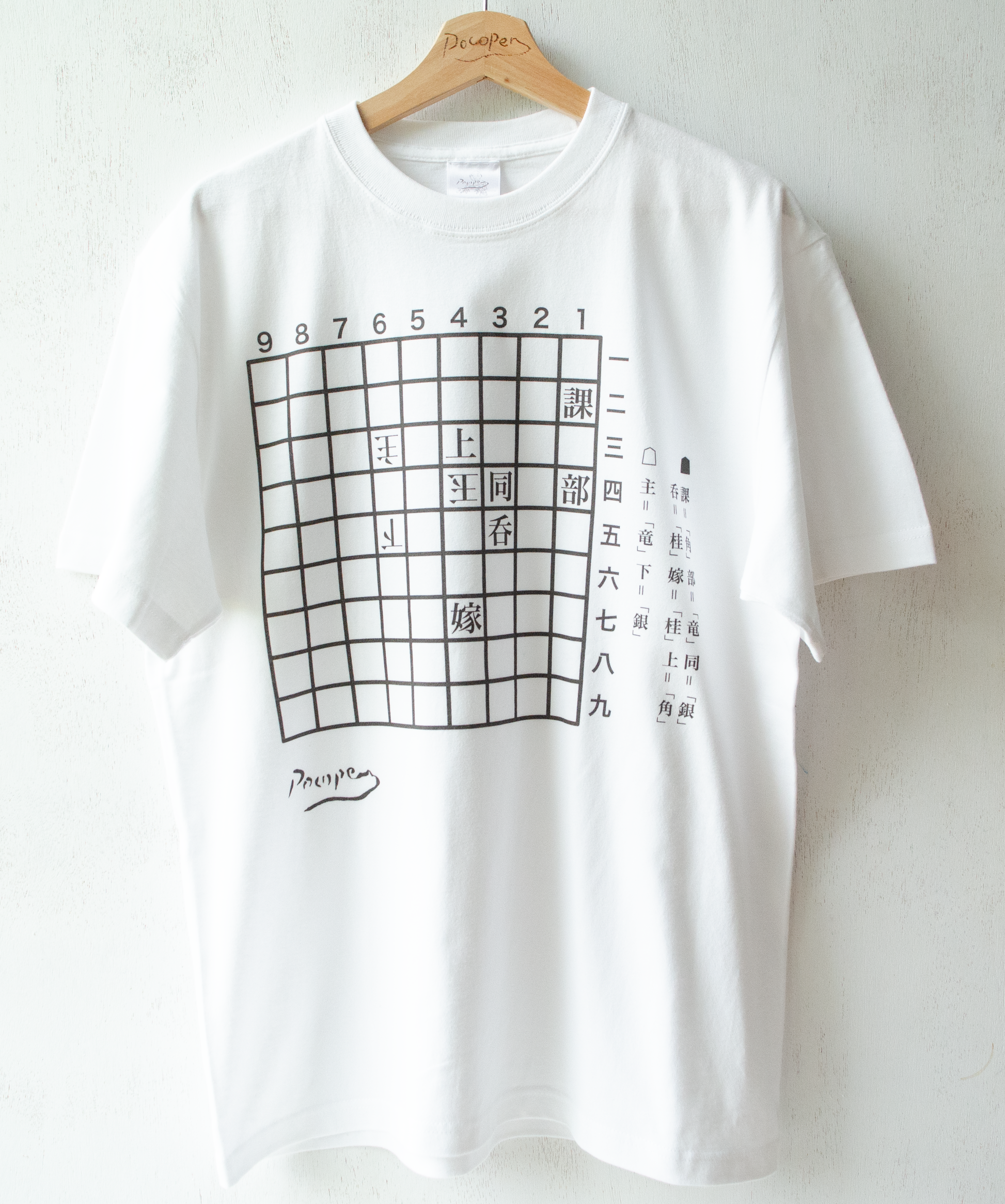 これは、3手詰めの詰め将棋の盤に日常の中の四面楚歌な状況を落とし込んだ、ユニークかつスタイリッシュなTシャツシリーズである。