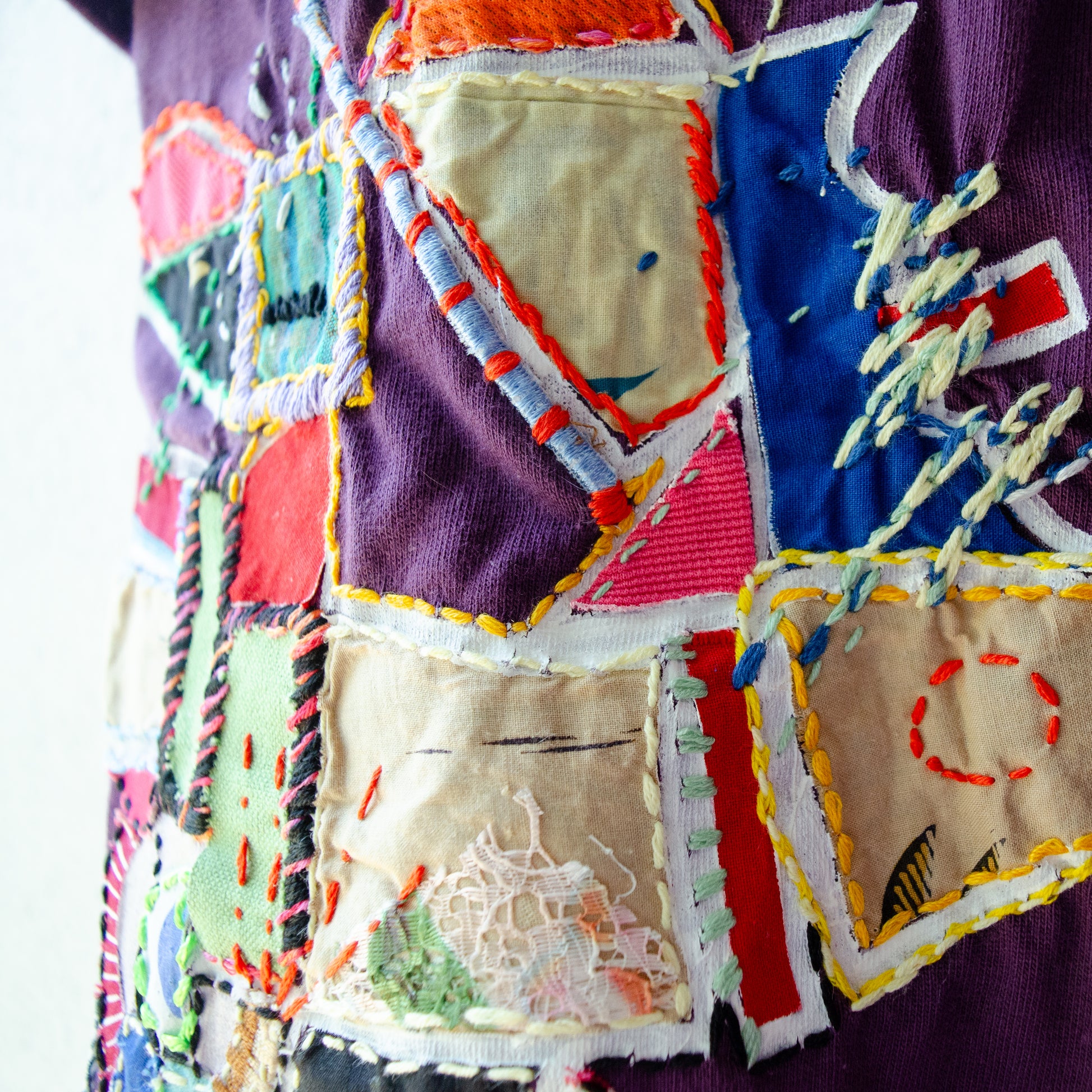 全体に大胆な刺繍がされており、異素材が型破りに組み合わされている。別名"beT(ベットT)"と名付けたこのシリーズは、「bet=賭ける」とTシャツをかけた造語である。どなたかに購入されるまで手を加え続け、価値が上乗せされていく商品であることを意味している。