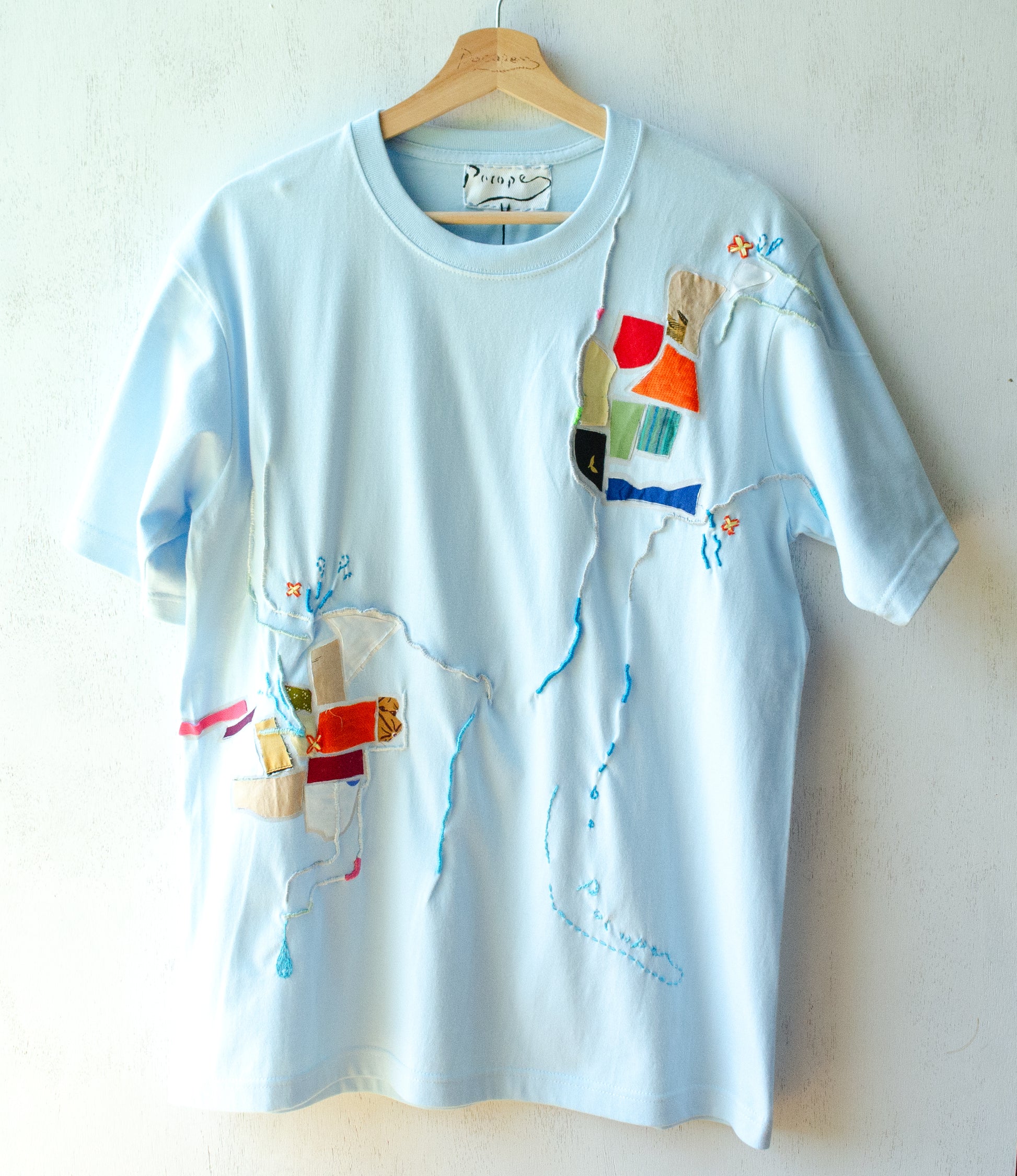 トレーナーで人気の刺繍がたくさん施された一点物のシリーズがTシャツでも登場。